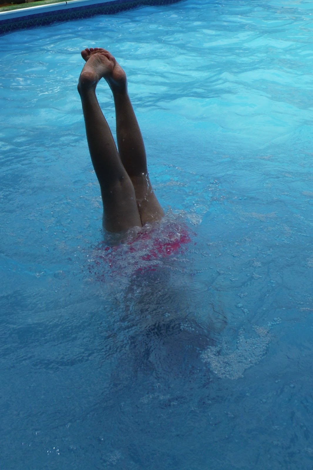 And it is only day 3 in the pool! She might be starring on the swim team by weeks end! It is just amazing, and so surprising to see our Gracie under the water, and now doing hand stands, flips and more just 2 weeks after she decided tearfully to be brave and put her face under the water! She is on a roll!! I plan to post videos when I can for daddy and any one else who wants to see them, but Grandma does not have stellar internet speeds, so it may have to wait until we return.